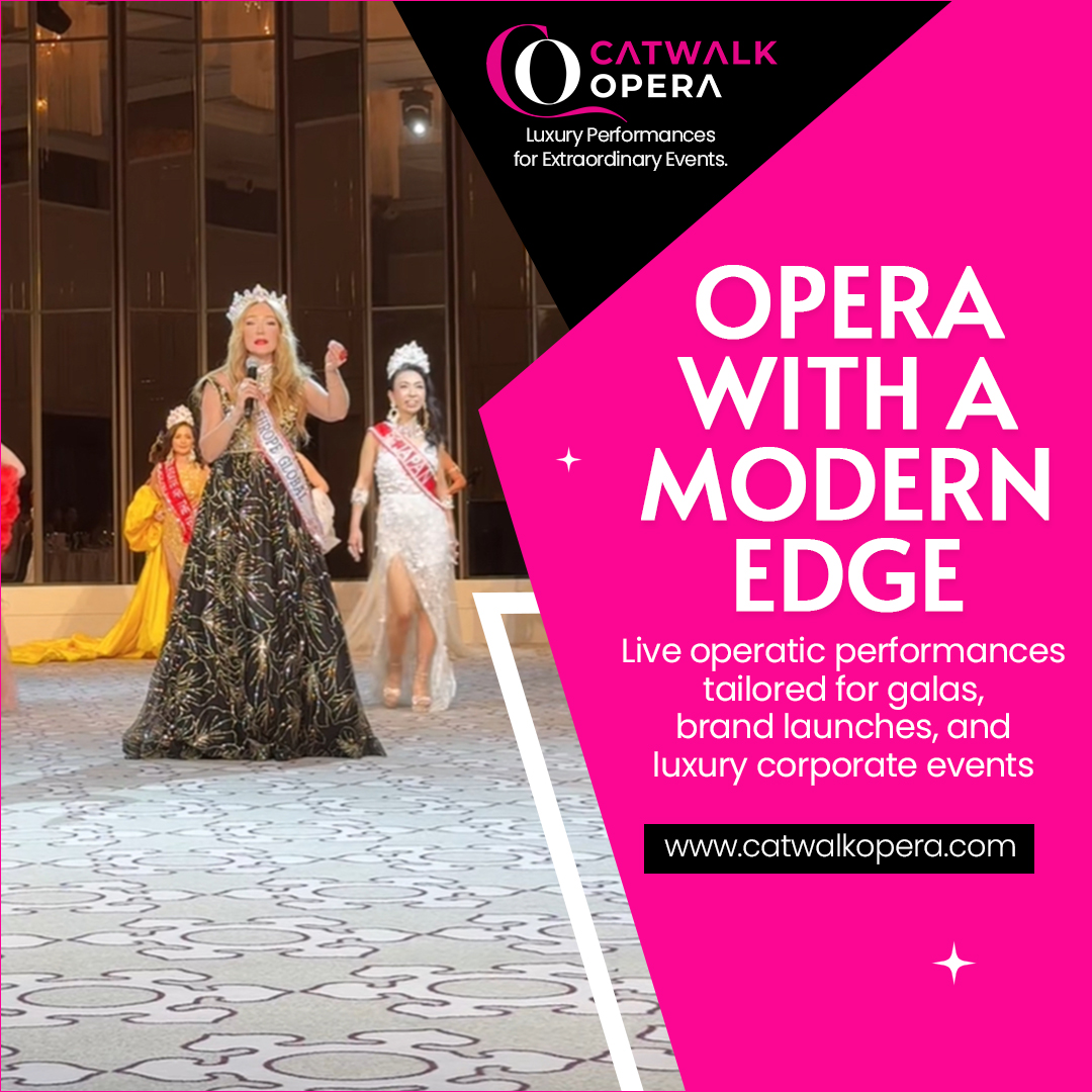 Catwalk Opera is a luxury performance concept created by international soprano and crossover vocalist Monika Spruch. Blending the elegance of opera with cinematic sound and high-fashion presentation, Catwalk Opera is designed for refined environments and high-profile occasions.
